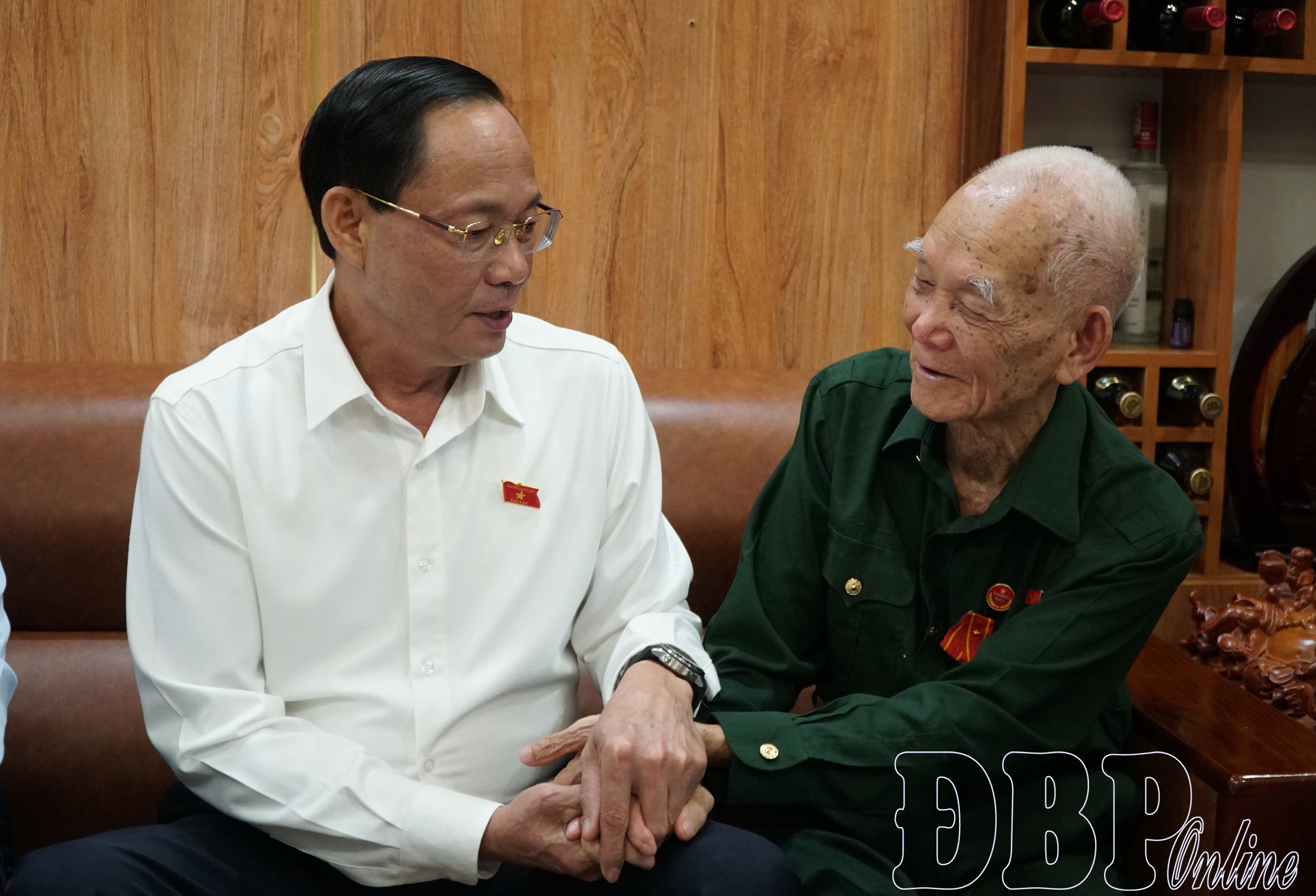 | Tổng Bí thư Tô Lâm chúc sức khỏe chiến sĩ Điện Biên Phạm Văn Ngân. |
