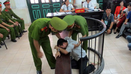 | Đặng Trần Hoài lăn lộn tại phiên tòa. (Ảnh: Phi Long- Lao động) |