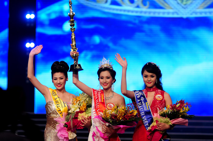 | Hoa hậu Việt Nam 2012 Đặng Thu Thảo (giữa). Á hậu 1 Dương Tú Anh (trái). Á hậu 2 Đỗ Hoàng Anh |