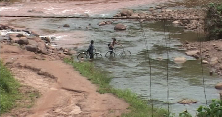 | ... còn học sinh không vác được xe đạp thì phải lội suối. |