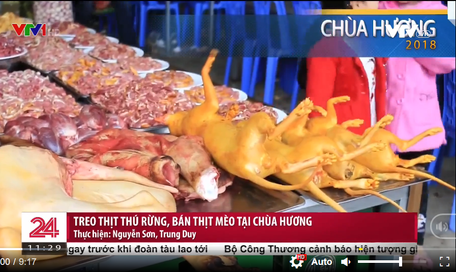 Trong lễ hội chùa Hương năm 2018, những con vật được chủ hàng quảng cáo là thịt thú rừng xịn, được bày bán khắp nơi ngay tại cổng chùa. Tại lễ hội chùa Hương năm nay, những con vật ấy vẫn được bày bán, nhưng không phô trương như trước mà được xếp đặt ngay ngắn trong tủ kính. Tuy nhiên món thịt mèo, gọt mõm, cắt tai, thui vàng, đội lốt thành cầy hương vẫn được trưng ra ngay sát đường đi. Chiêu trò này dù đã bị Chi cục Quản lý thị trường TP Hà Nội lật tẩy trong đợt kiểm tra đột xuất năm 2018, thế nhưng năm nay lại tiếp tục tái diễn.