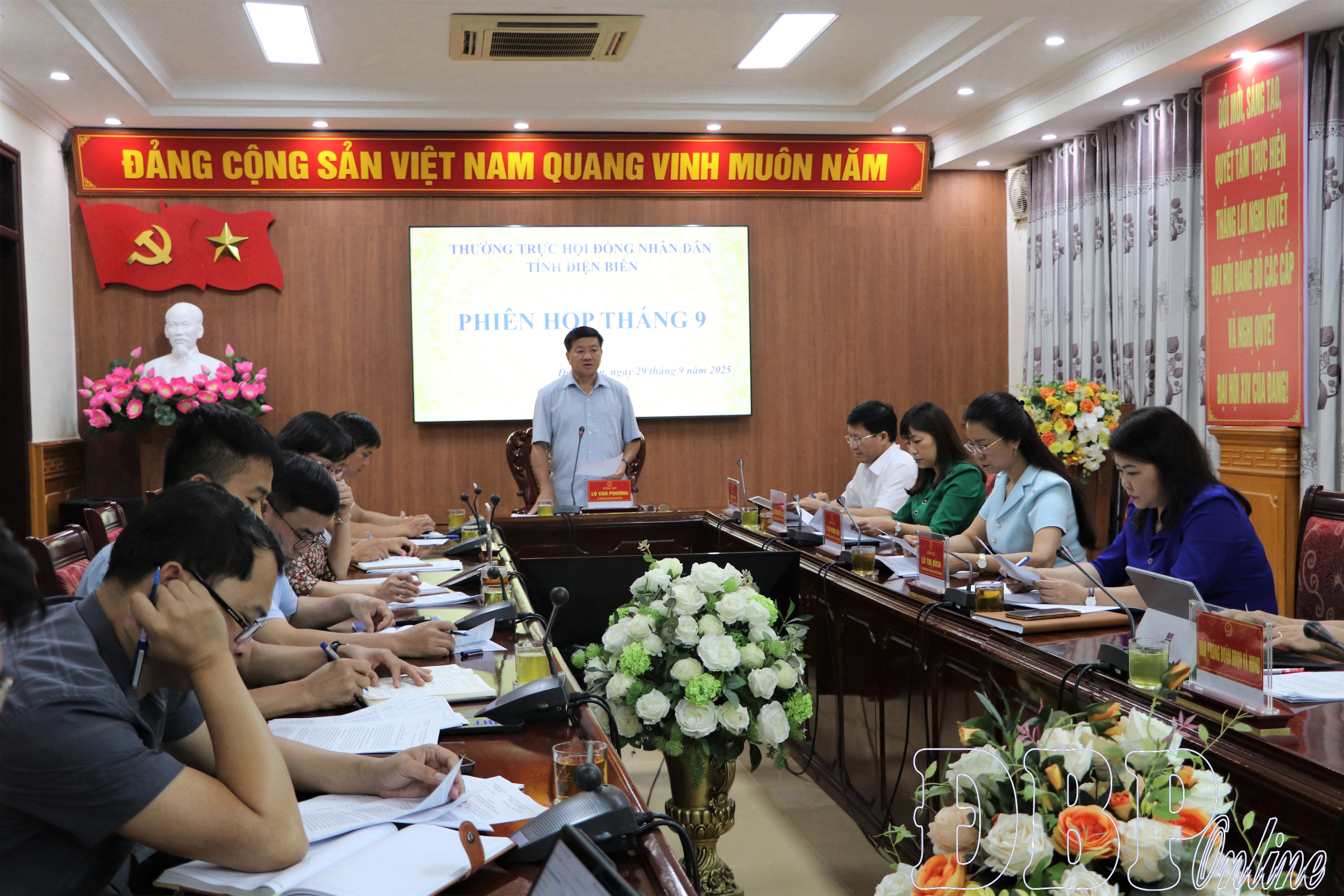 ĐBP - Chiều nay (29/9), Thường trực HĐND tỉnh tổ chức phiên họp tháng 9. Đồng chí Lò Văn Phương, Ủy viên Ban Thường vụ Tỉnh ủy, Chủ tịch HĐND tỉnh chủ trì phiên họp. Dự phiên họp có các đồng chí: Mùa A Vảng, Ủy viên dự khuyết Trung ương Đảng, Ủy viên Ban Thường vụ Tỉnh ủy, Chủ tịch Ủy ban MTTQ Việt Nam tỉnh; Lò Văn Cương, Phó Chủ tịch UBND tỉnh.