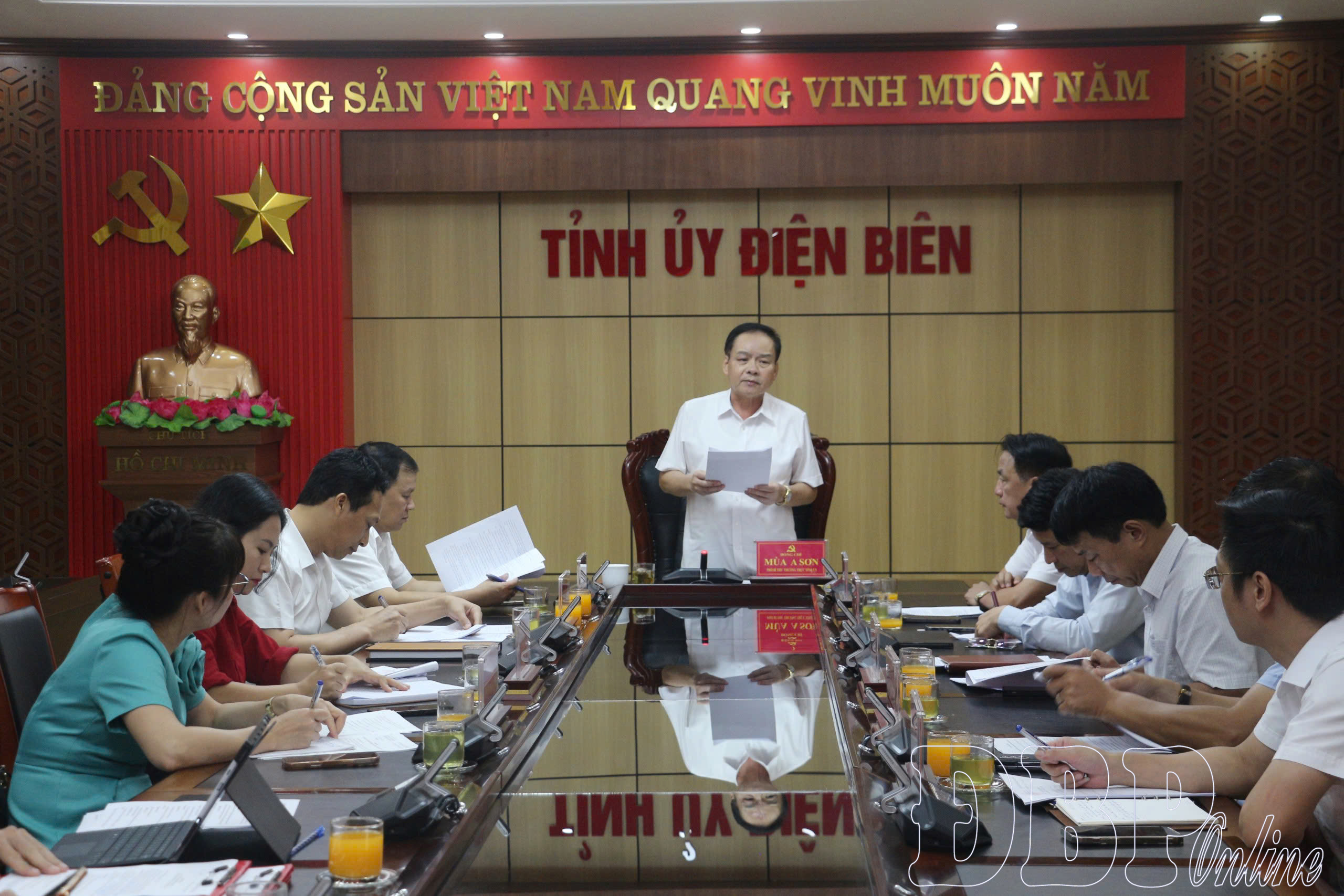 ĐBP - Chiều ngày 16/9, Tiểu ban Tuyên truyền, khánh tiết phục vụ Đại hội Đảng bộ tỉnh lần thứ XV, nhiệm kỳ 2025 – 2030 tổ chức họp thông qua báo cáo hoạt động và lấy ý kiến vào dự thảo các văn bản. Các đồng chí: Mùa A Sơn, Phó Bí thư Thường trực Tỉnh ủy, Trưởng Tiểu ban Tuyên truyền, khánh tiết; Lò Thị Minh Phượng, Ủy viên BTV, Trưởng ban Tuyên giáo và Dân vận Tỉnh ủy, Phó trưởng Tiểu ban chủ trì cuộc họp.