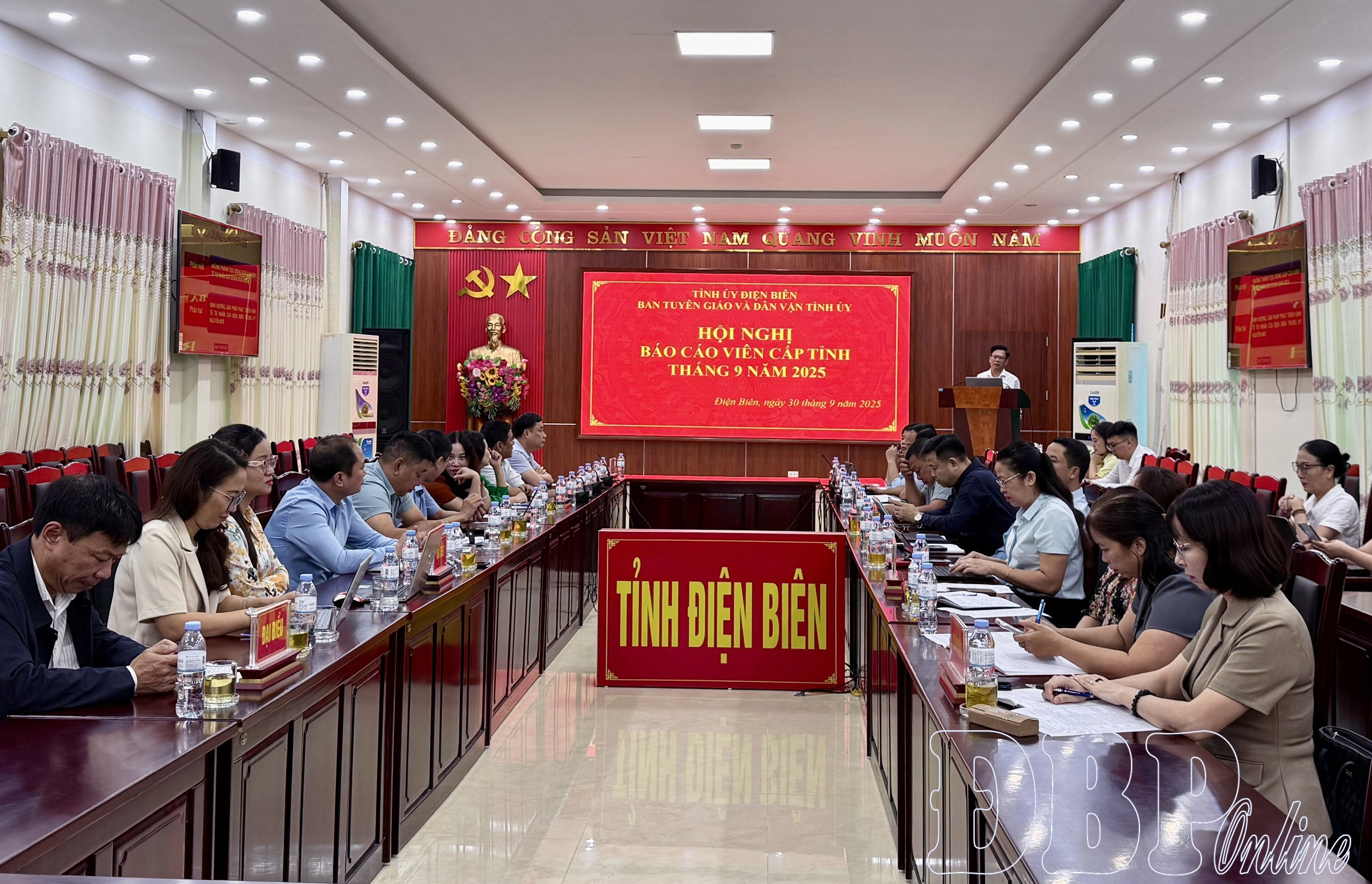 ĐBP - Sáng nay (30/9), Ban Tuyên giáo và Dân vận Tỉnh ủy tổ chức Hội nghị Báo cáo viên cấp tỉnh tháng 9/2025 theo hình thức trực tiếp kết hợp trực tuyến tới điểm cầu cấp xã và tương đương. Dự hội nghị có đồng chí Phạm Đức Toàn, Ủy viên Ban Thường vụ Tỉnh ủy, Phó Chủ tịch Thường trực UBND tỉnh.