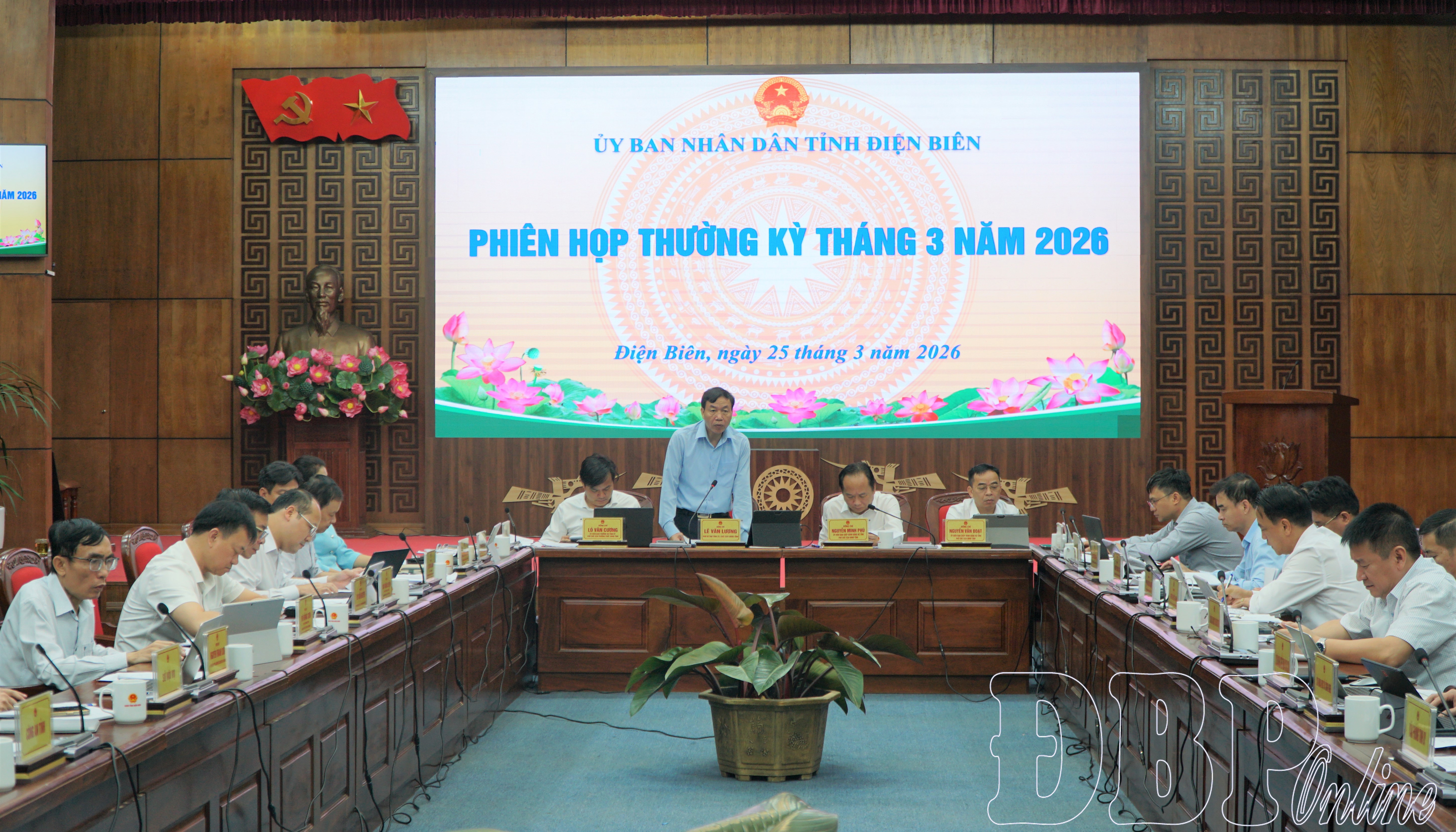 ĐBP - Sáng 25/3, phiên họp UBND tỉnh thường kỳ tháng 3 (lần 2) diễn ra dưới sự chủ trì của Chủ tịch UBND tỉnh Lê Văn Lương cùng các Phó Chủ tịch UBND tỉnh: Lò Văn Cương, Nguyễn Minh Phú, Nguyễn Văn Đoạt.
