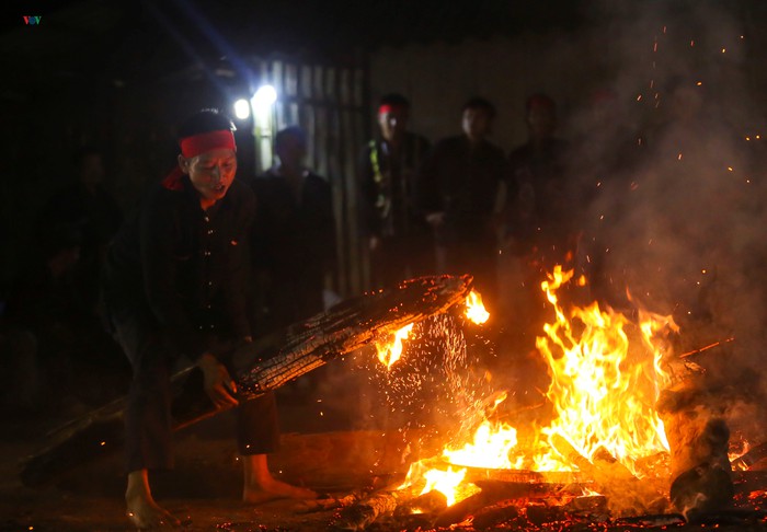 Một đống than củi to được soạn sẵn, phải là loại than hồng, đang bùng cháy ở giai đoạn rực rỡ nhất và chỉ những chàng trai được chọn nhảy lửa mới được ngồi “hầu lễ” từ đầu, để được các thầy cúng “phù phép”.